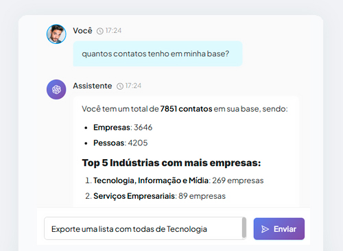 ChatGPT nativo em cada funcionalidade. Enriqueça dados automaticamente, gere insights estratégicos e tome decisões baseadas em análise preditiva. Seus dados comerciais trabalhando com a IA mais avançada do mundo.